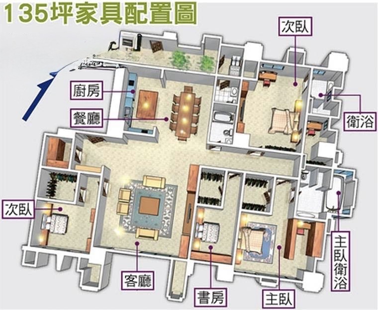 - 坪數規劃:約 124~137 坪,標準戶約 135 坪